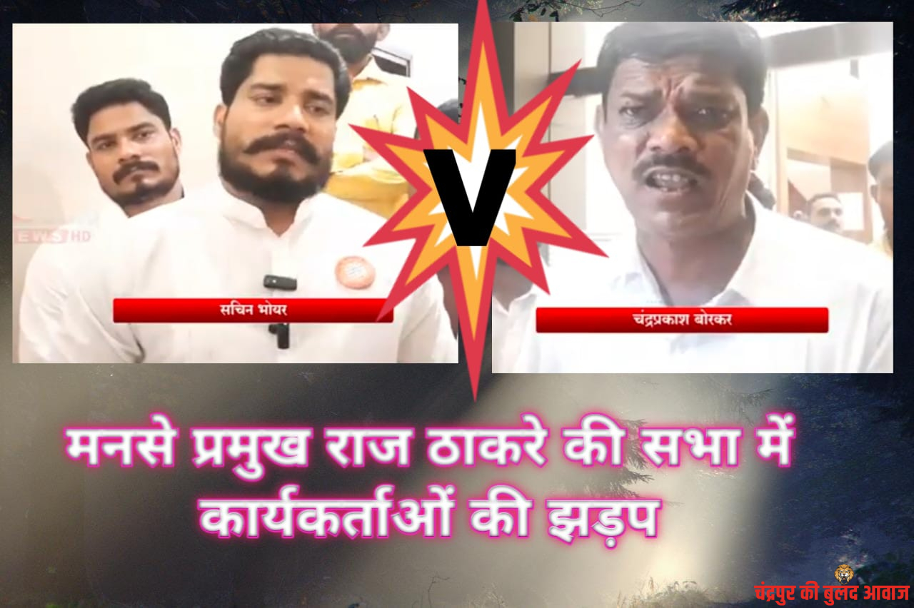 चंद्रपुर विधानसभा क्षेत्र से राज ठाकरे मनसे जिला अध्यक्ष मंदीप रोडे और राजुरा विधानसभा क्षेत्र से चंद्रपुर शहर मनसे अध्यक्ष सचिन भोयर की घोषणा की गई।बैठक खत्म होते ही राज ठाकरे जैसे ही बैठक से निकले तो भोयर समर्थक और बोरकर समर्थक आपस में भिड़ गए।