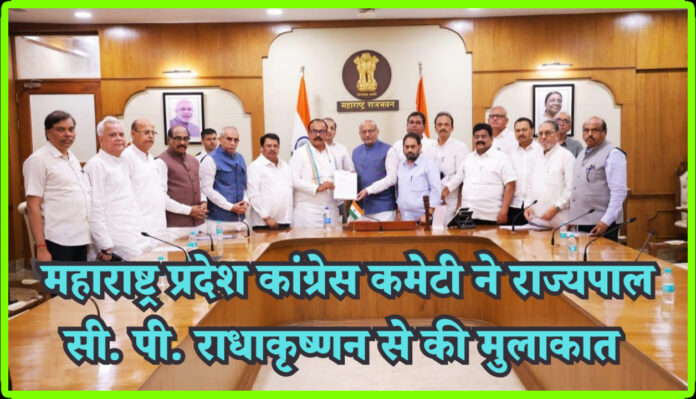 मुंबई: प्रदेश कांग्रेस अध्यक्ष हर्षवर्धन सपकाळ सहित कांग्रेस नेताओं ने मा. राज्यपाल सी. पी. राधाकृष्णन से राजभवन में मुलाकात कर मांग की कि राज्य में सरकार कानून-व्यवस्था बनाए रखने में विफल रही है और भड़काऊ बयान देकर राज्य में शांति भंग करने वाले नितेश राणे जैसे मंत्रियों को मंत्रिमंडल से हटाया जाना चाहिए।