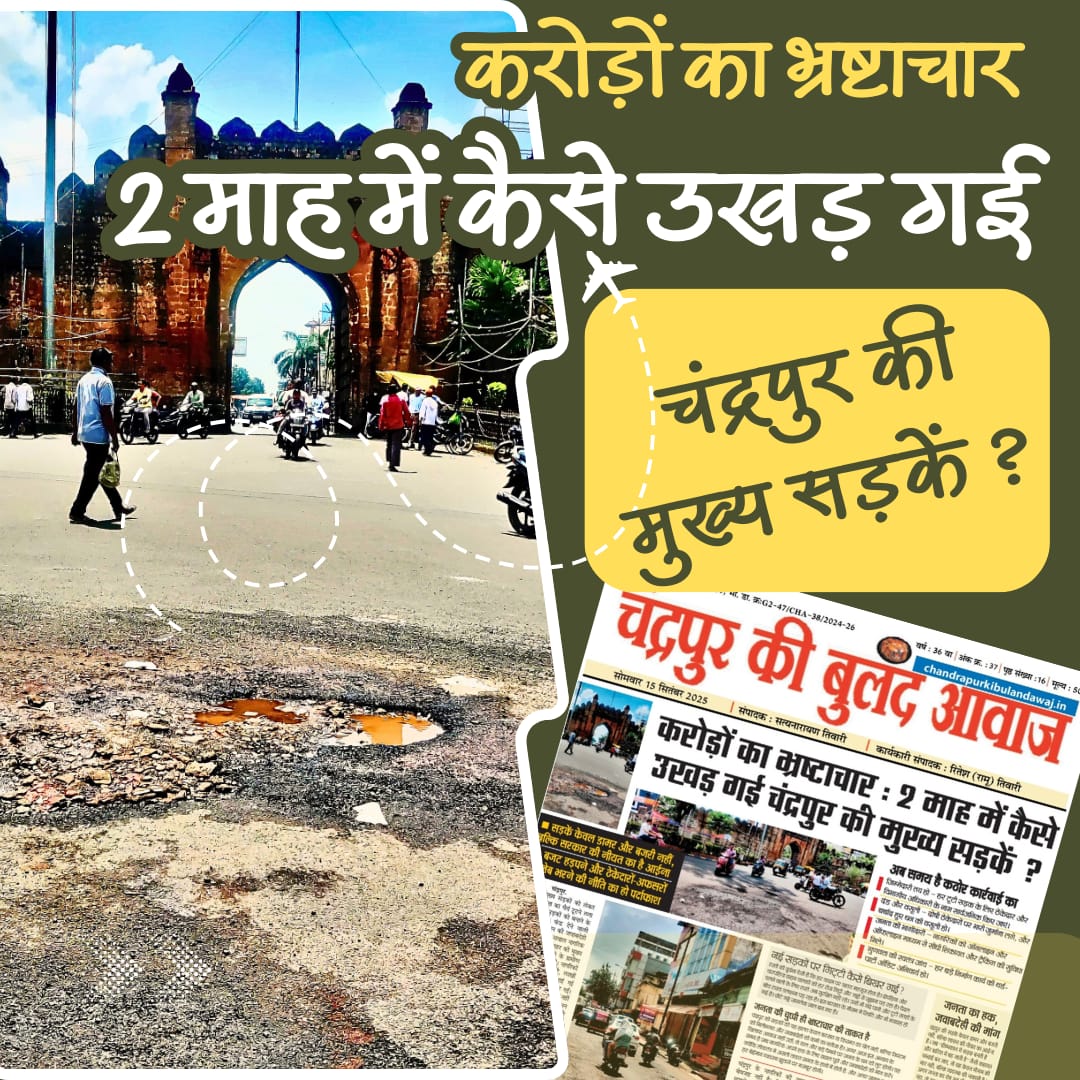 चंद्रपुर की मुख्य सड़कों को लेकर अब आम जनता का धैर्य टूटने लगा है। इन घटिया सड़कों को बनाने के लिए करोड़ों का फंड देने वाली सरकार और प्रशासन की जवाबदेही कहां है ? यह अहम सवाल नागरिक पूछने लगे है। चंद्रपुर शहर की मुख्य सड़कों के अलावा जिले के ग्रामीण इलाकों का भी यही हाल है। नागरिकों के गुस्से की वजह साफ है, लाखों करोड़ों रुपये खर्च कर बनाई गई सड़कें पहले ही मानसून में बह गईं। यह केवल खराब सड़कों का मुद्दा नहीं है, बल्कि भ्रष्टाचार, निकम्मे प्रशासन और जनता के साथ किए जा रहे खुले धोखे का प्रतीक है।