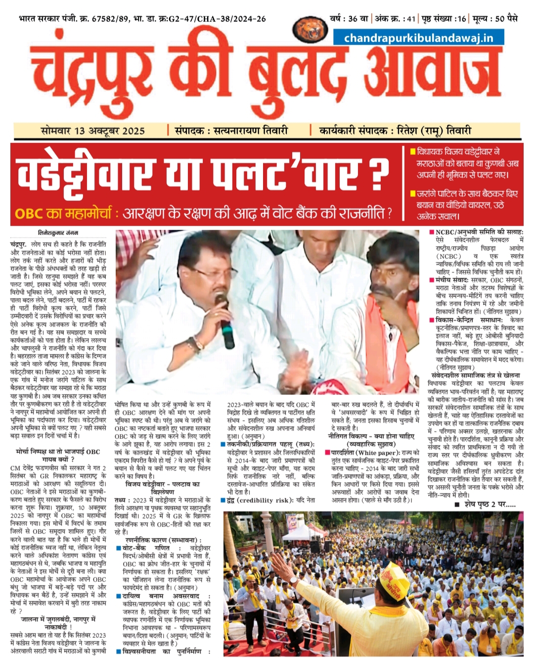 Epaper Epaper चंद्रपुर की बुलंद आवाज 13 october 2025 By chandrapurkibulandawaj.in - October 13, 2025 227 WhatsAppFacebookTwitter Post Views: 261