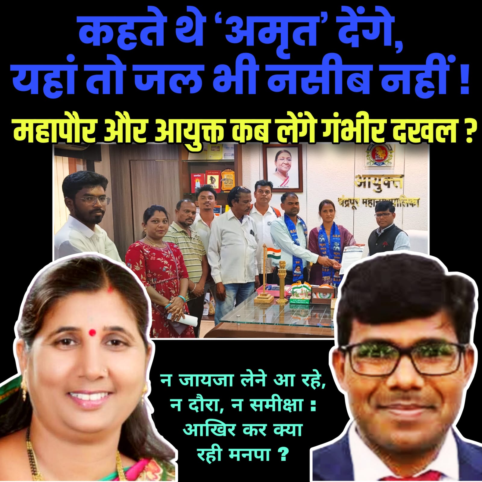 चंद रोज पहले ही नवनियुक्त महापौर संगीता खांडेकर को आगाह करते हुए यह समाचार प्रसारित किया गया था कि मनपा की अमृत जलापूर्ति योजना एक मुख्य चुनौती के रूप में उभर आएगी। चंद्रपुर शहर के अनेक नल केवल हवा उगलने की बात उजागर करने के बाद अपेक्षा थी कि महापौर खांडेकर तत्काल इसकी गंभीर दखल लेगी और जलसंकट पर मात करने के लिए कोई ठोस कदम उठाएगी। लेकिन ऐसा कुछ नहीं हुआ और बहुजन समाज पार्टी की नगरसेविका सोनिया उंदीरवाडे के नेतृत्व में एक प्रतिनिधिमंडल ने मनपा आयुक्त अकुनुरी नरेश से भेंट कर अमृत योजना की पोल खोल दी। बसपा ने दावा किया कि प्रभाग 13 के बाबानगर, बाबूपेठ एवं प्रभाग 7 के जलनगर में रहने वाली आम जनता गंभीर जलसंकट का सामना कर रही है।
